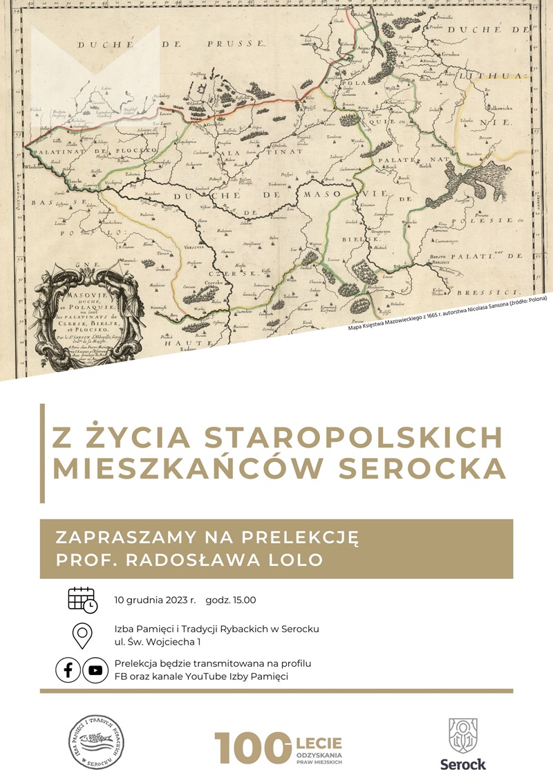 10 grudnia, w najbliższą niedzielę, zapraszamy na godzinę 15.00 do Izby Pamięci i Tradycji Rybackich w Serocku na prelekcję prof. Radosława Lolo, profesora AP, pt. "Z życia staropolskich mieszkańców Serocka".