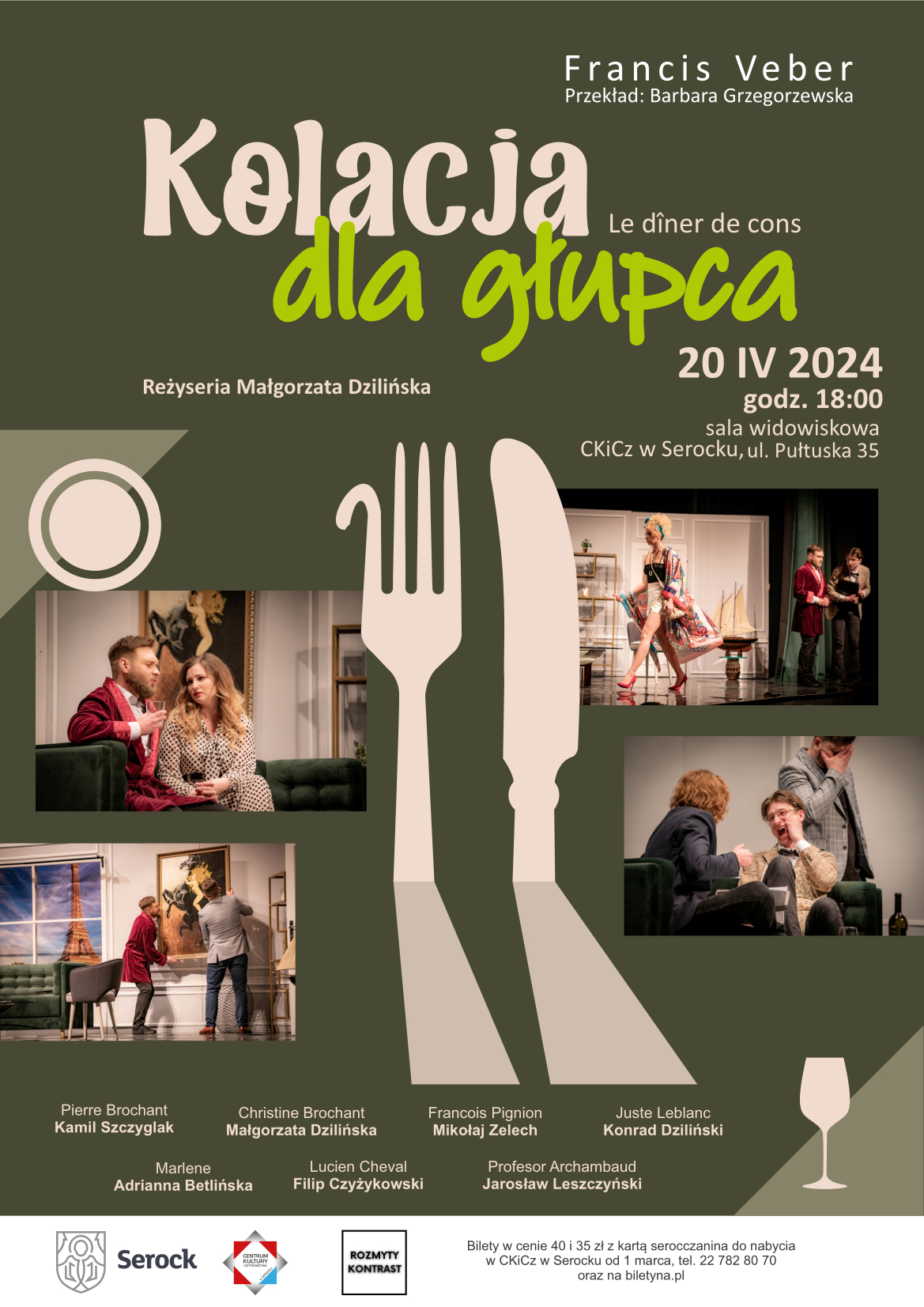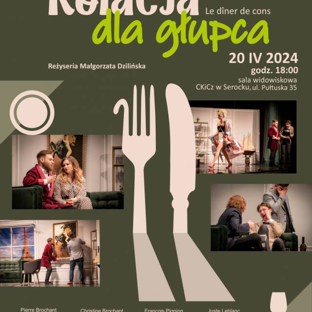 Zapraszamy na spektakl w wykonaniu Teatru Rozmyty Kontrast "Kolacja dla głupca" w reżyserii Małgorzaty Dzilińskiej.