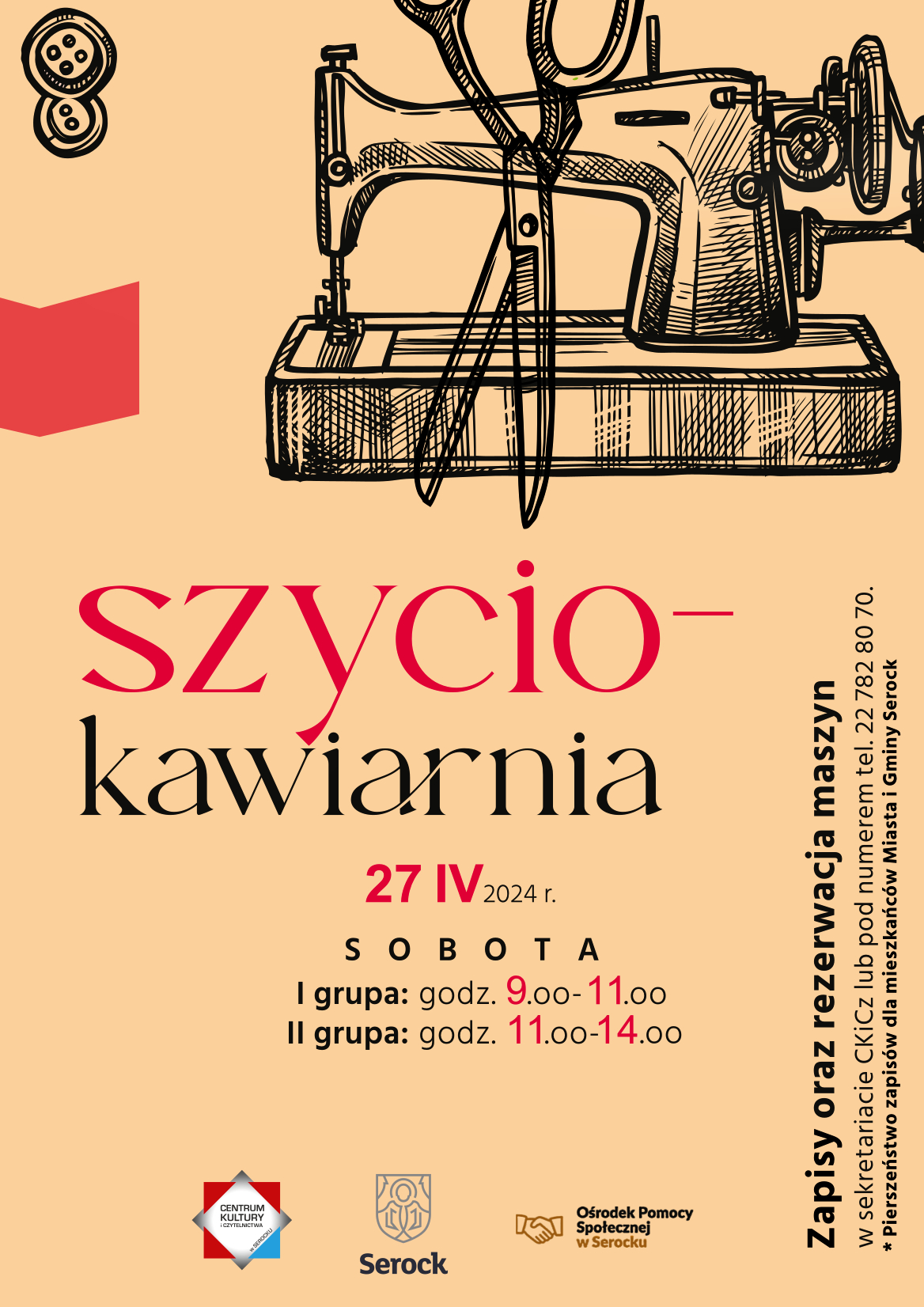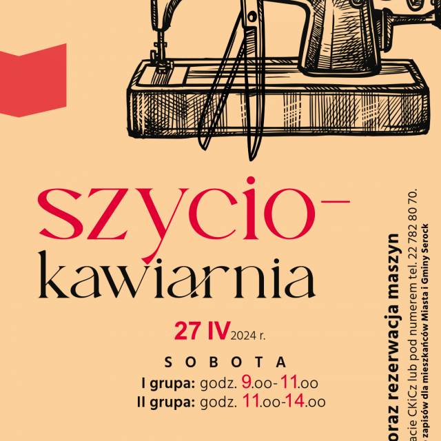 W sobotę 27 kwietnia zapraszamy do Centrum Kultury i Czytelnictwa w Serocku do Szyciokawiarni