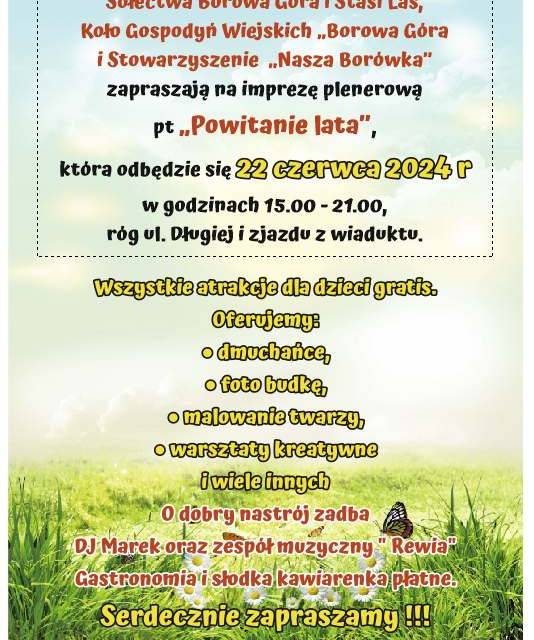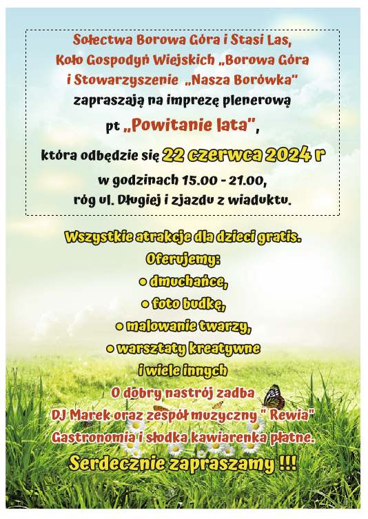 22.06 Razem z #SołectwemBorowaGóra #Stasi Las zapraszamy na imprezę ,,Powitanie lata"
