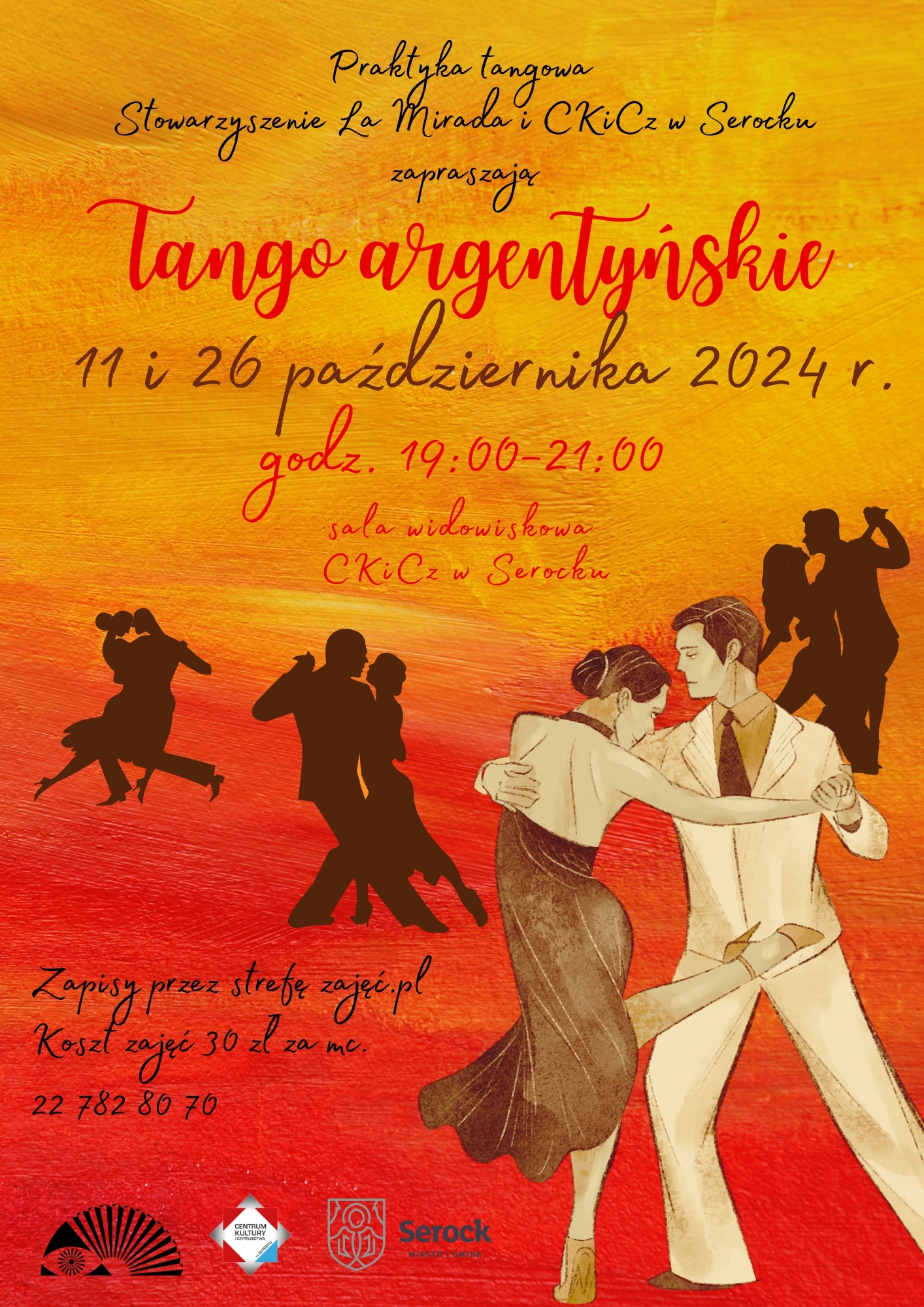 Tango argentyńskie - praktyka tangowa prowadzona przez doświadczonych tancerzy tangowych w II-gi i IV-ty piątek miesiąca.