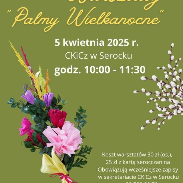 Obowiązkują wcześniejsze zapisy w sekretariacie CKiCz w Serocku, tel. 22 782 80 70