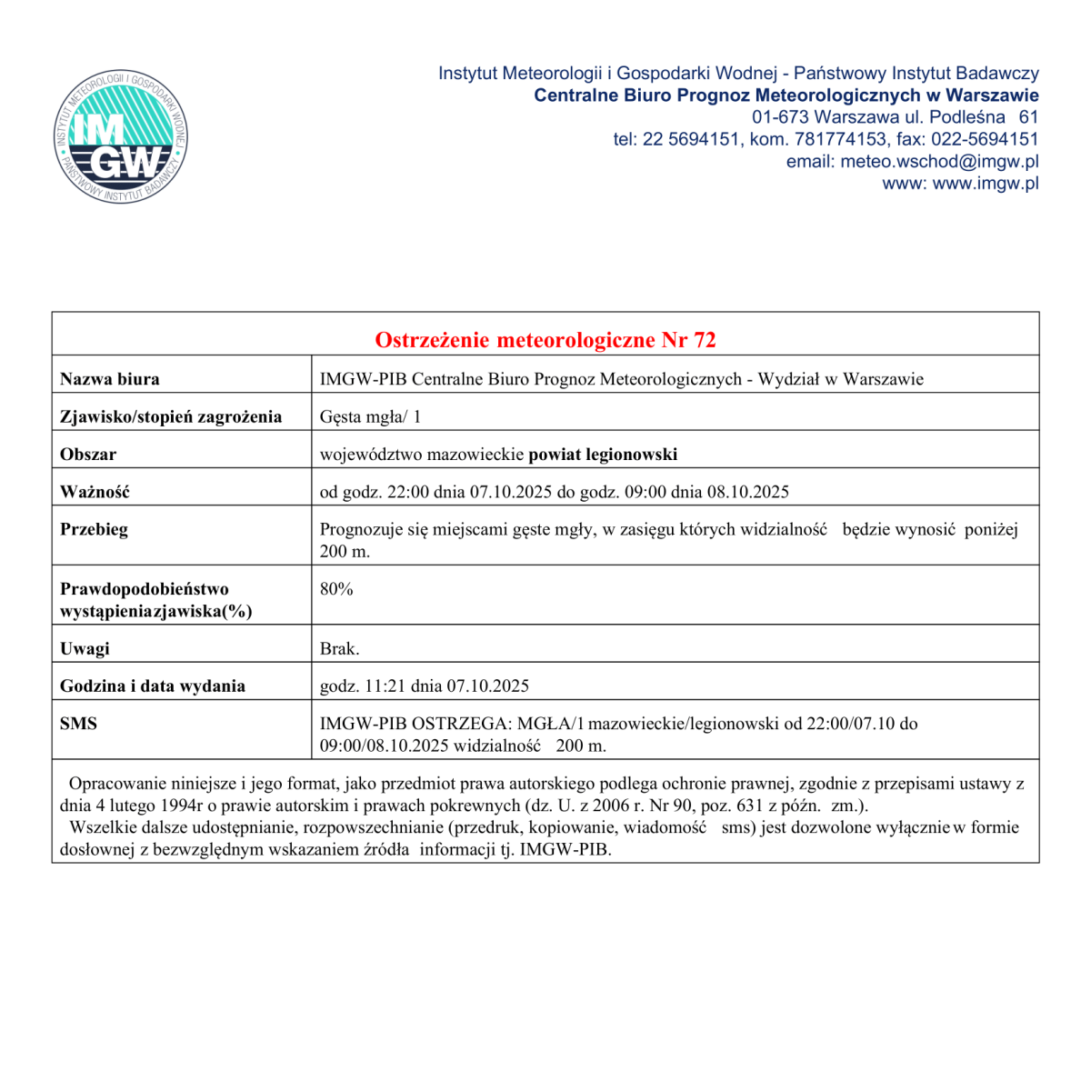 Ostrzeżenie meteorologiczne – gęsta mgła