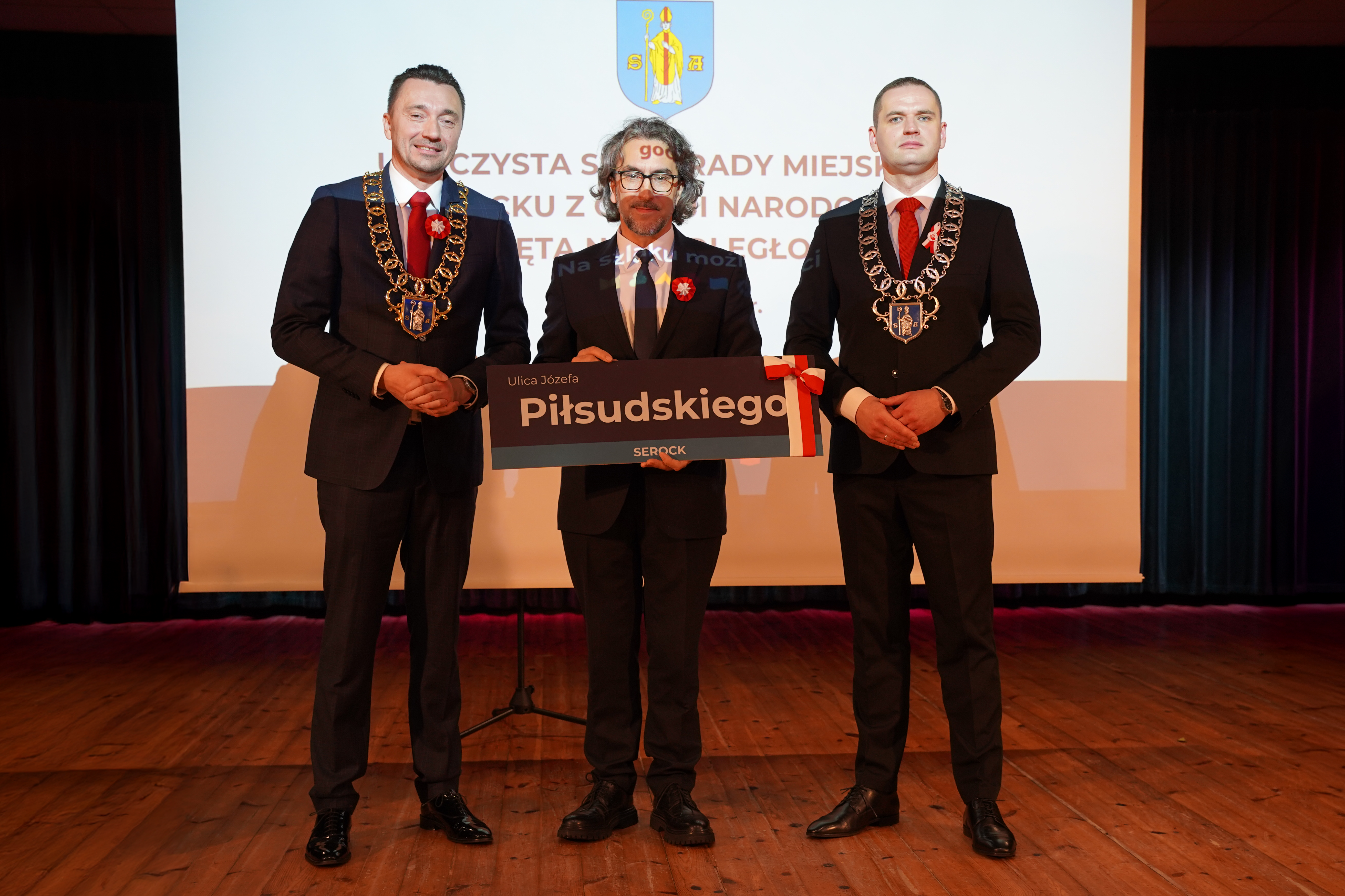 Podczas sesji rozpatrzono projekt uchwały w sprawie nadania drodze położonej w miejscowości Serock nazwy ul. Józefa Piłsudskiego. Symbolicznego przekazania tablicy z nazwą ulicy dokonali Burmistrz Miasta i Gminy Serock Artur Borkowski oraz Przewodniczący Rady Miejskiej w Serocku Tomasz Pszczoła, przekazując ją na ręce Pana Mirosława Smutkiewicza – dyrektora Zakładu Gospodarki Komunalnej w Serocku.