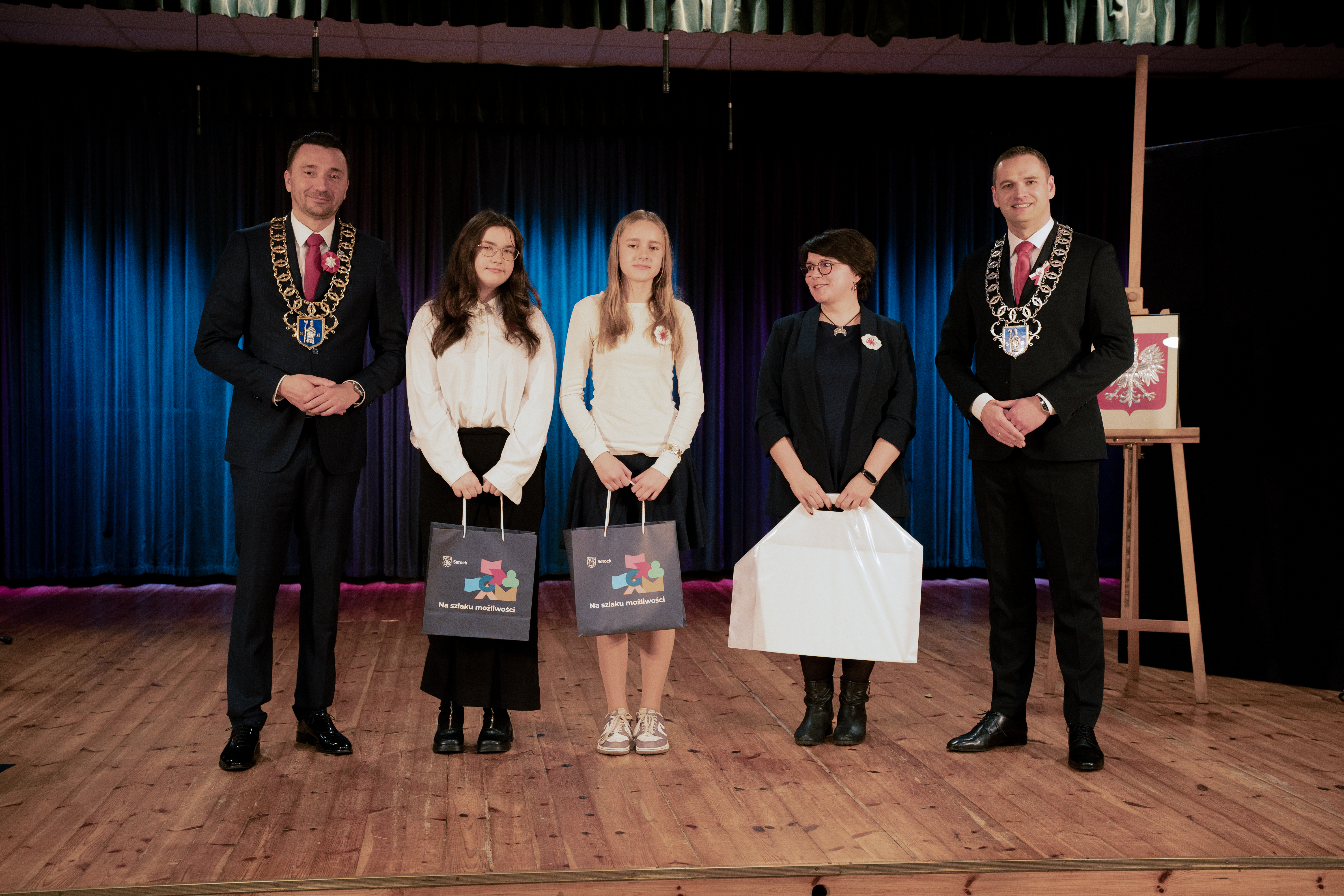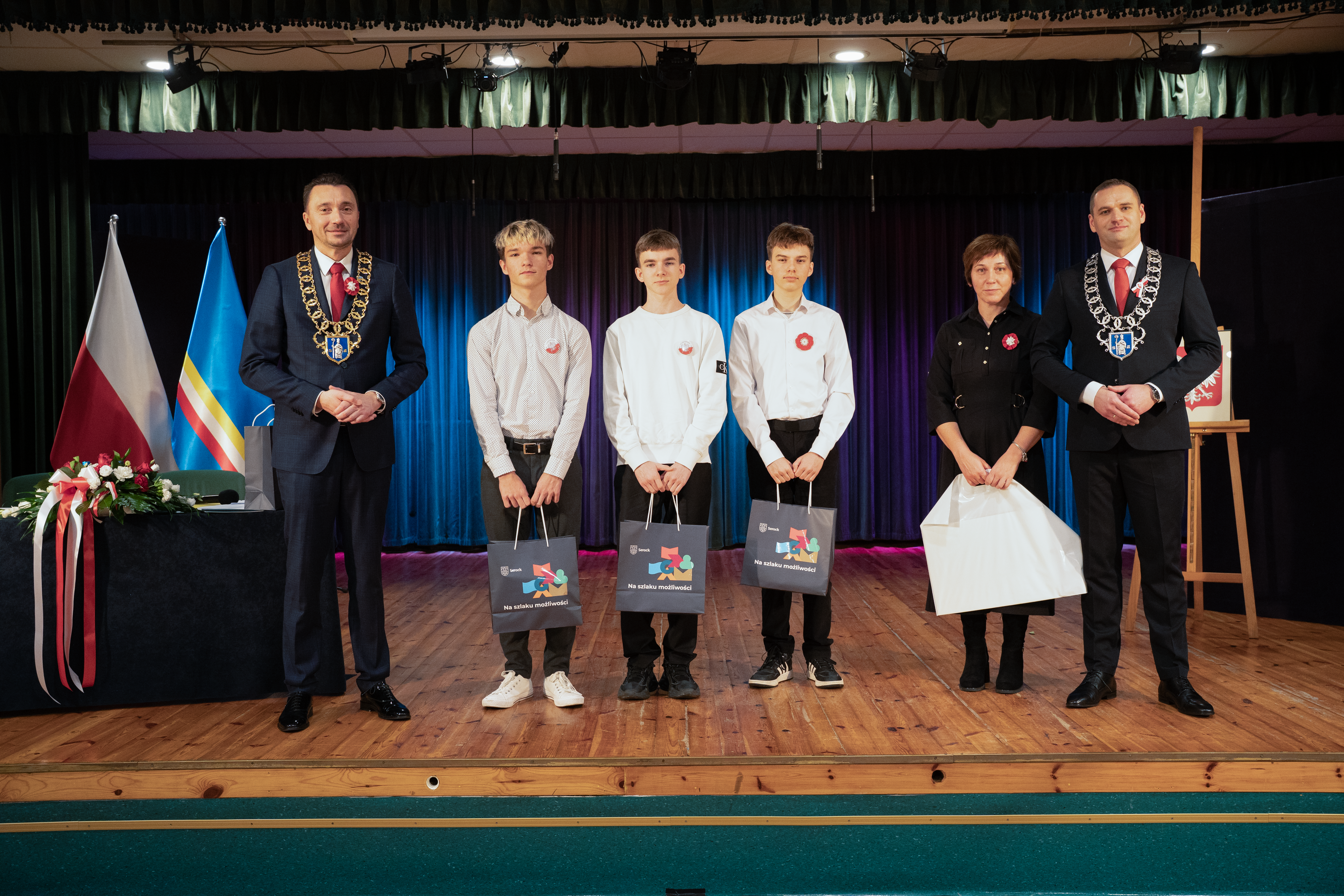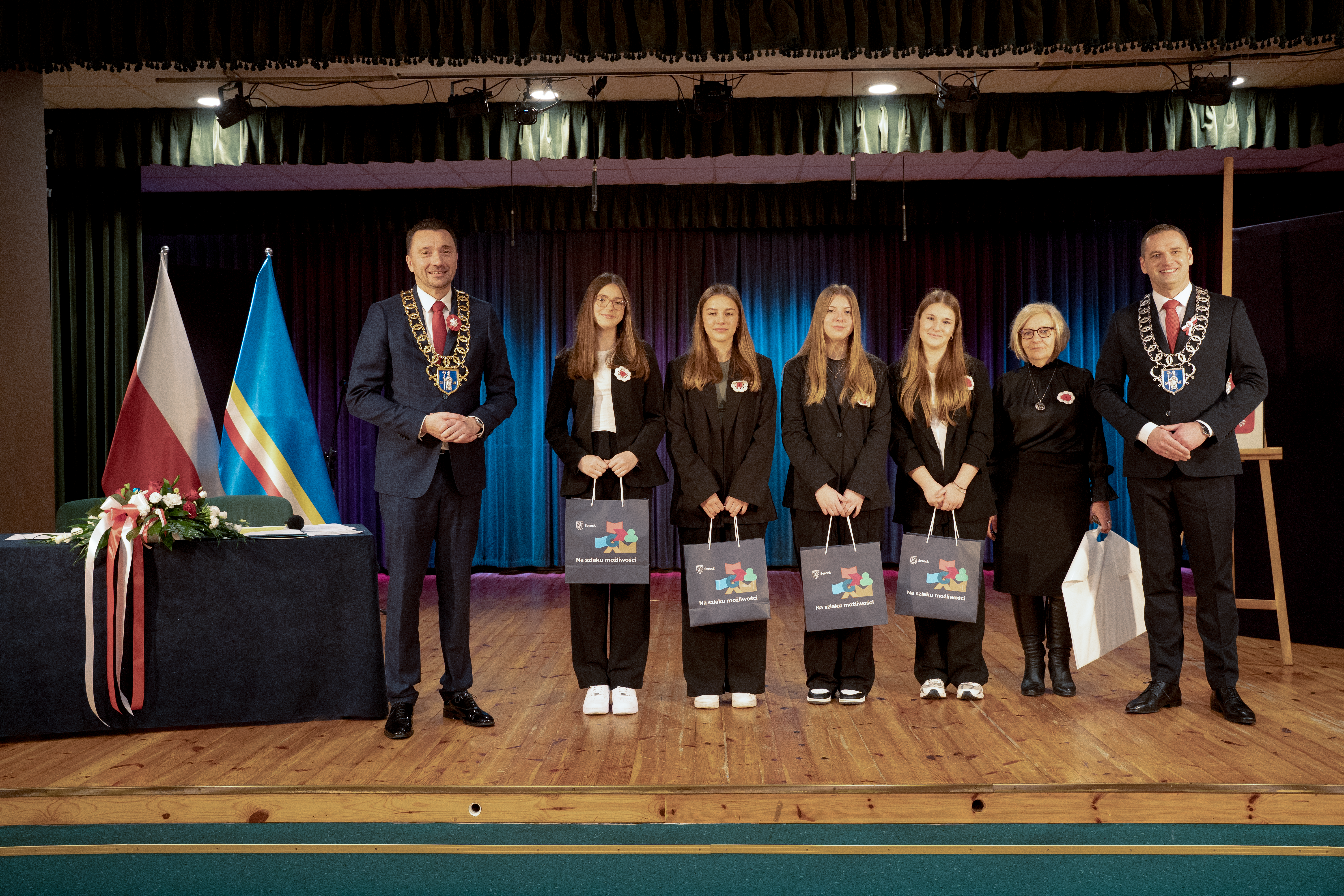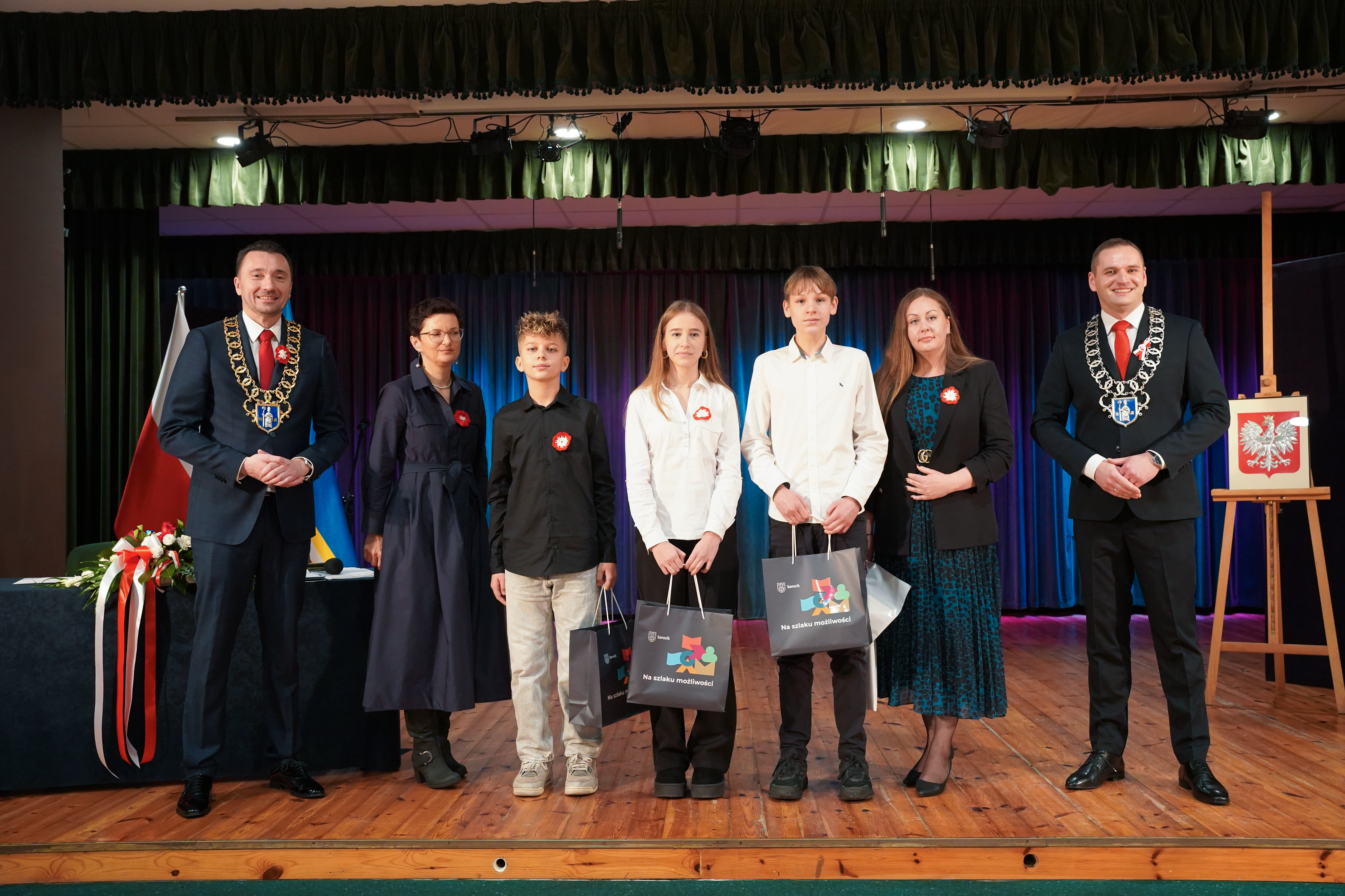 Podczas sesji złożono również podziękowania dla młodzieży za aktywny udział w obchodach 35-lecia samorządu serockiego. Uczniowie, którzy wzięli udział w przygotowaniu „Specjalnego Wydania Informatora Gminy Serock”, otrzymali z rąk władz gminy pamiątkowe upominki oraz wyrazy uznania za zaangażowanie i wkład w życie lokalnej społeczności.
