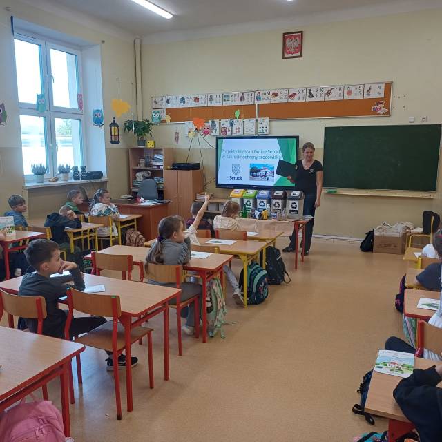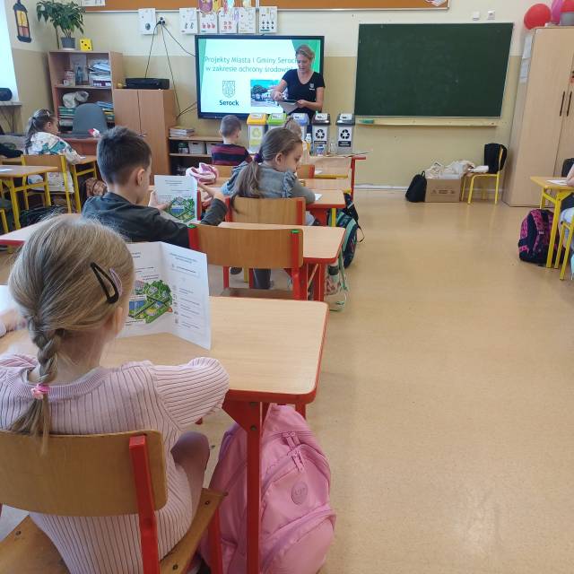 W dniach 5 i 20 listopada pracownicy Referatu Ochrony Środowiska, Rolnictwa i Leśnictwa przeprowadzili warsztaty ekologiczne dla najmłodszych uczniów Szkoły Podstawowej w Serocku. Spotkanie miało na celu przybliżenie zasad prawidłowej segregacji odpadów komunalnych oraz wprowadzenie w tematykę czystej, odnawialnej energii.