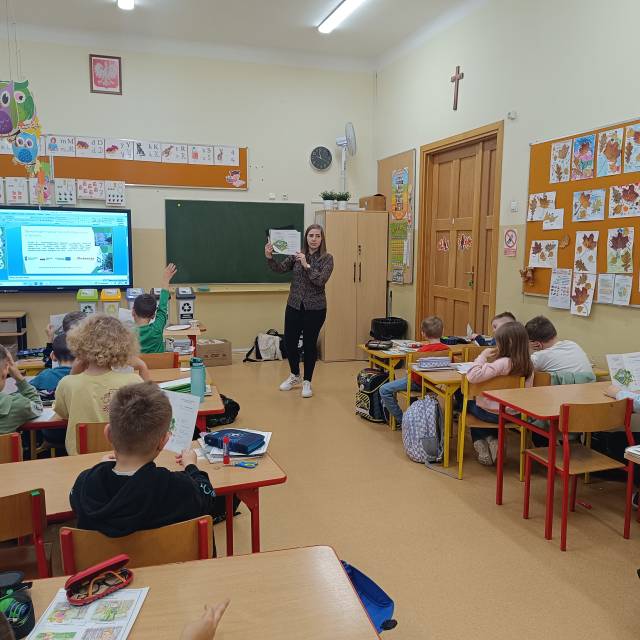 Dzieci aktywnie uczestniczyły w zajęciach, m.in. w przygotowanych quizach dotyczących rozpoznawania poszczególnych frakcji odpadów i umieszczania ich w odpowiednich pojemnikach. Pierwszoklasiści wykazali się dużą wiedzą, chętnie biorąc udział w zaplanowanych aktywnościach. Na zakończenie każdy uczestnik otrzymał drobny upominek.