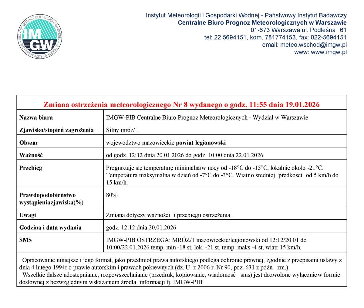 Aktualizacja: Ostrzeżenie meteorologiczne – silny mróz