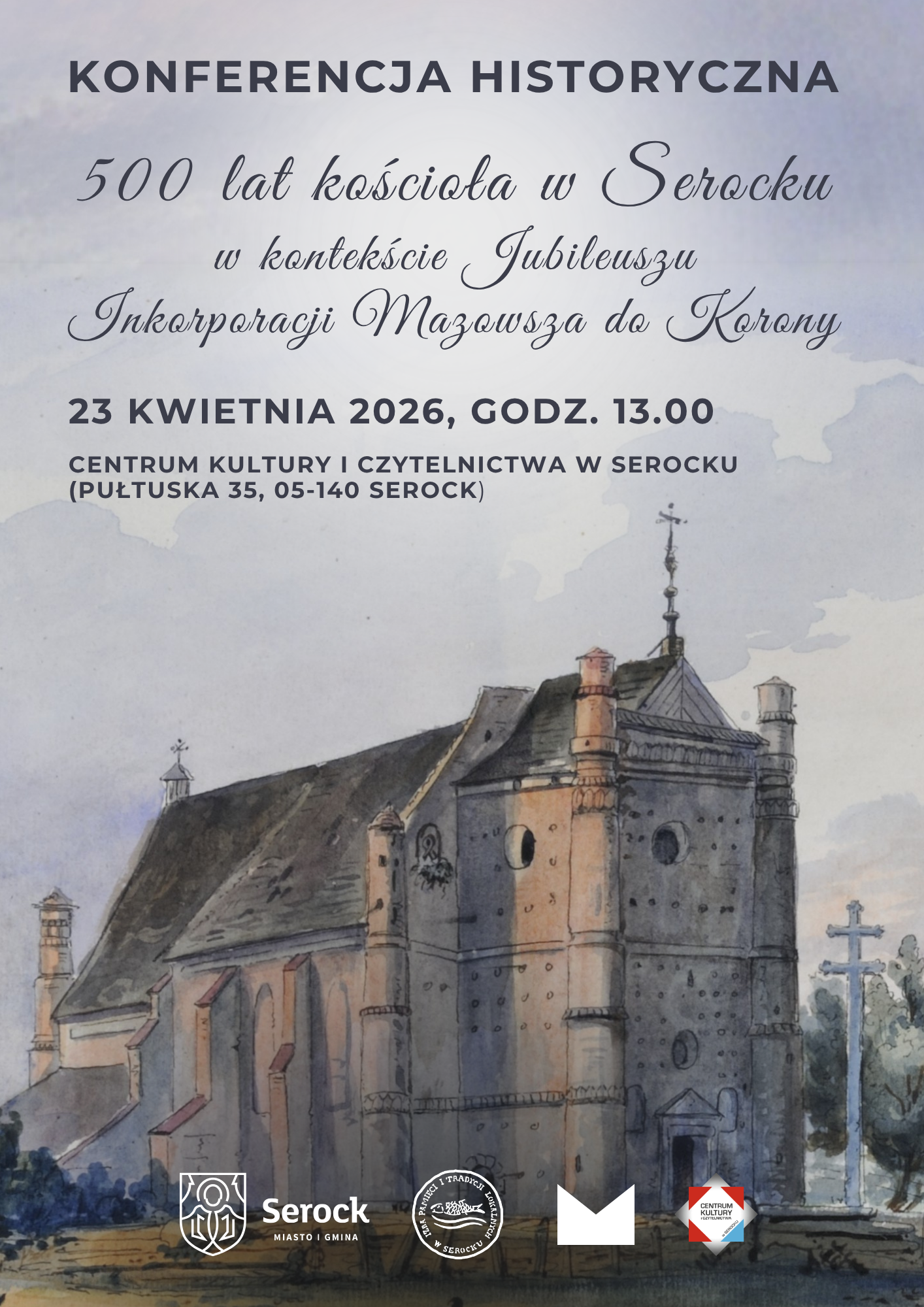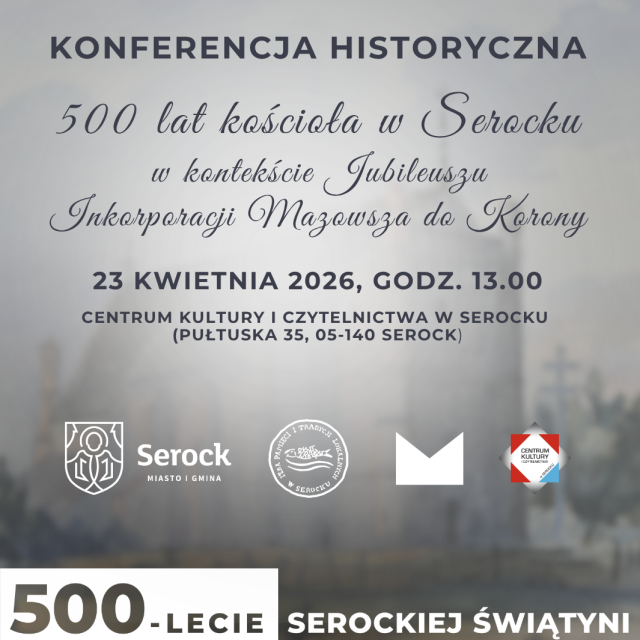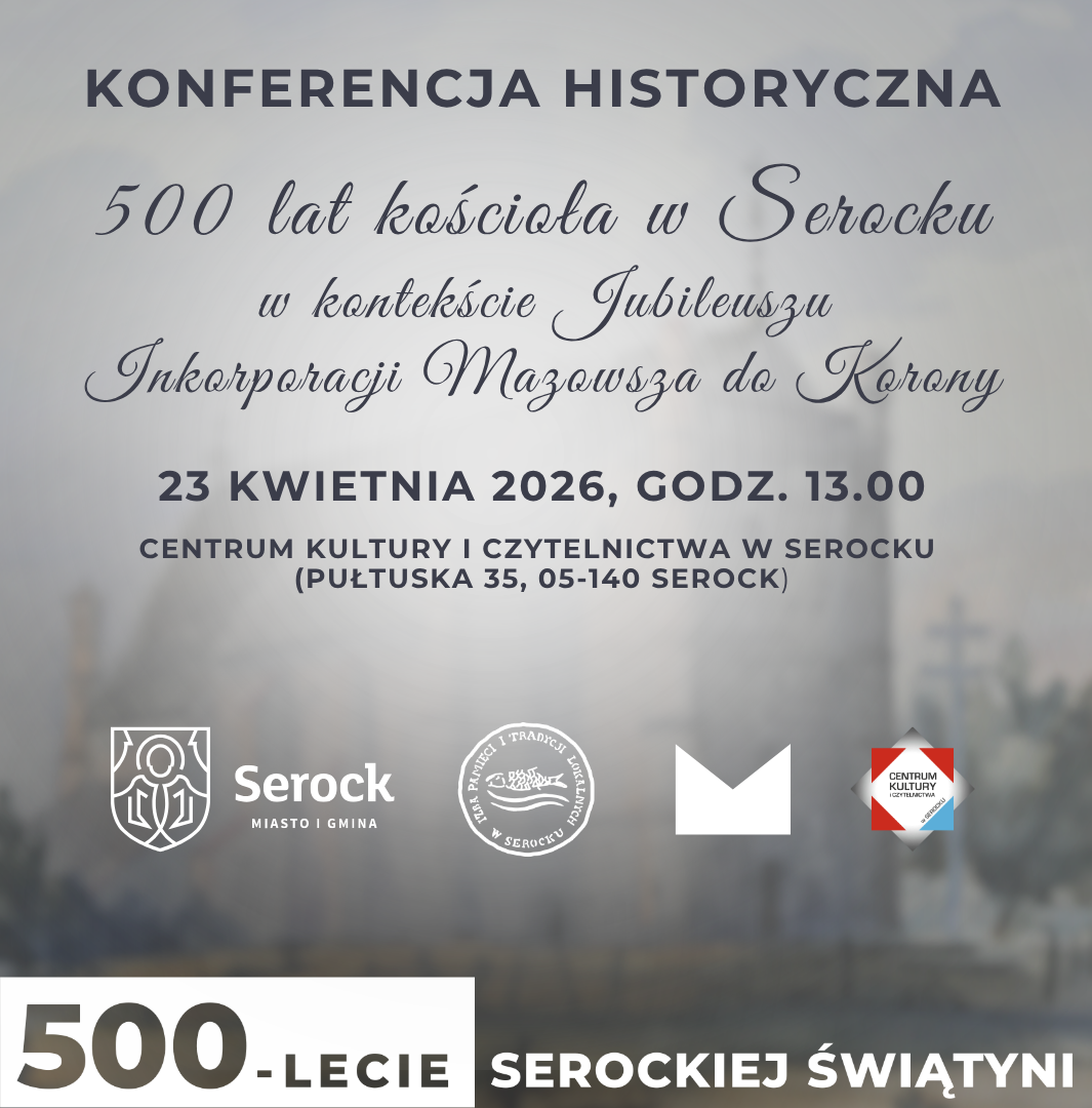 Serdecznie zapraszamy na konferencję historyczną pt. „500 lat kościoła w Serocku w kontekście Jubileuszu Inkorporyzacji Mazowsza do Korony”, organizowaną w ramach obchodów 500-lecia serockiej świątyni.