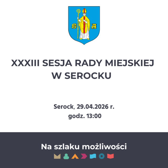 29 kwietnia 2026 r. o godz. 13:00 w sali konferencyjnej Urzędu Miasta i Gminy odbędzie się XXXIII Sesja Rady Miejskiej w Serocku.