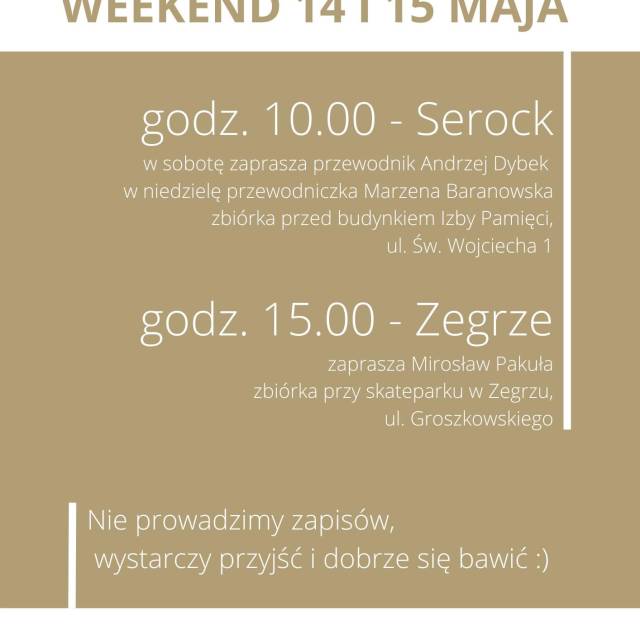 14 maja i 15 maja o godzinie 10.00 - spacer po Serocku