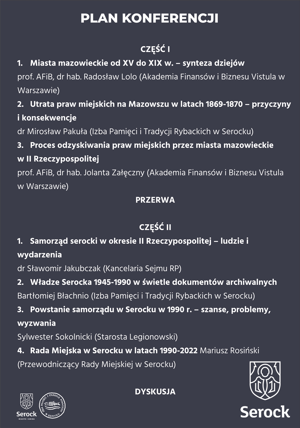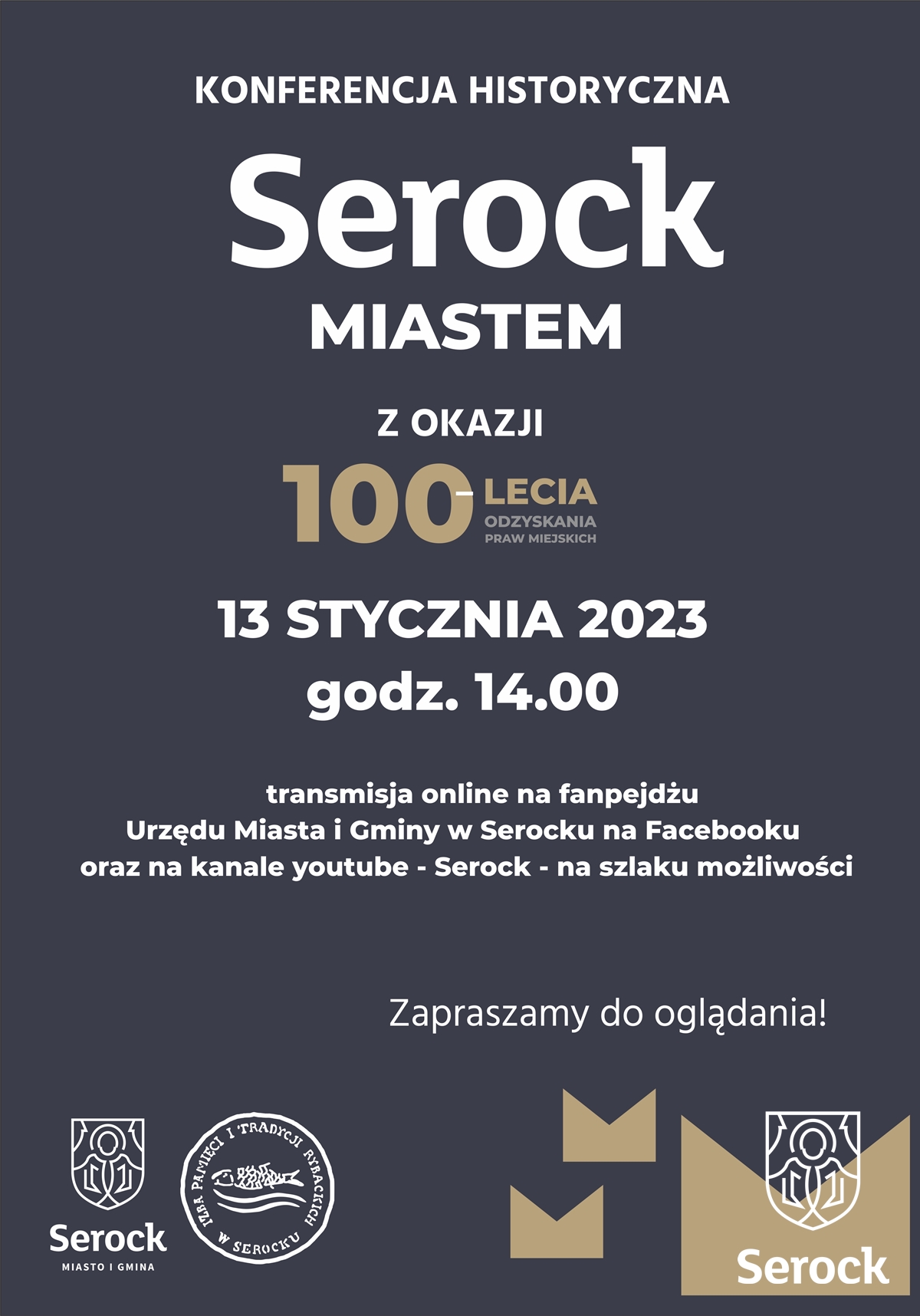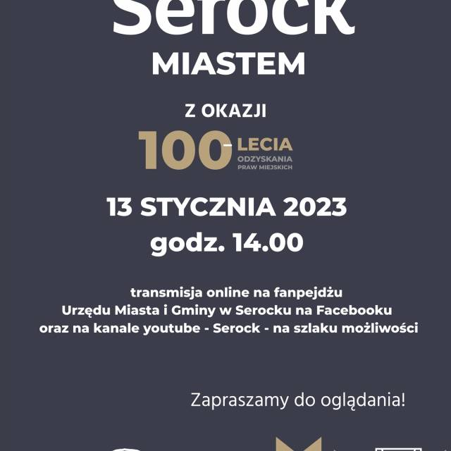 W tym roku Serock obchodzi 100. rocznicę odzyskania praw miejskich. Z tej okazji 13 stycznia odbędzie się konferencja historyczna, którą transmitować będziemy na Facebooku, na fanpejdżu Urzędu Miasta i Gminy w Serocku oraz na youtubie, na kanale Serock - na szlaku możliwości.