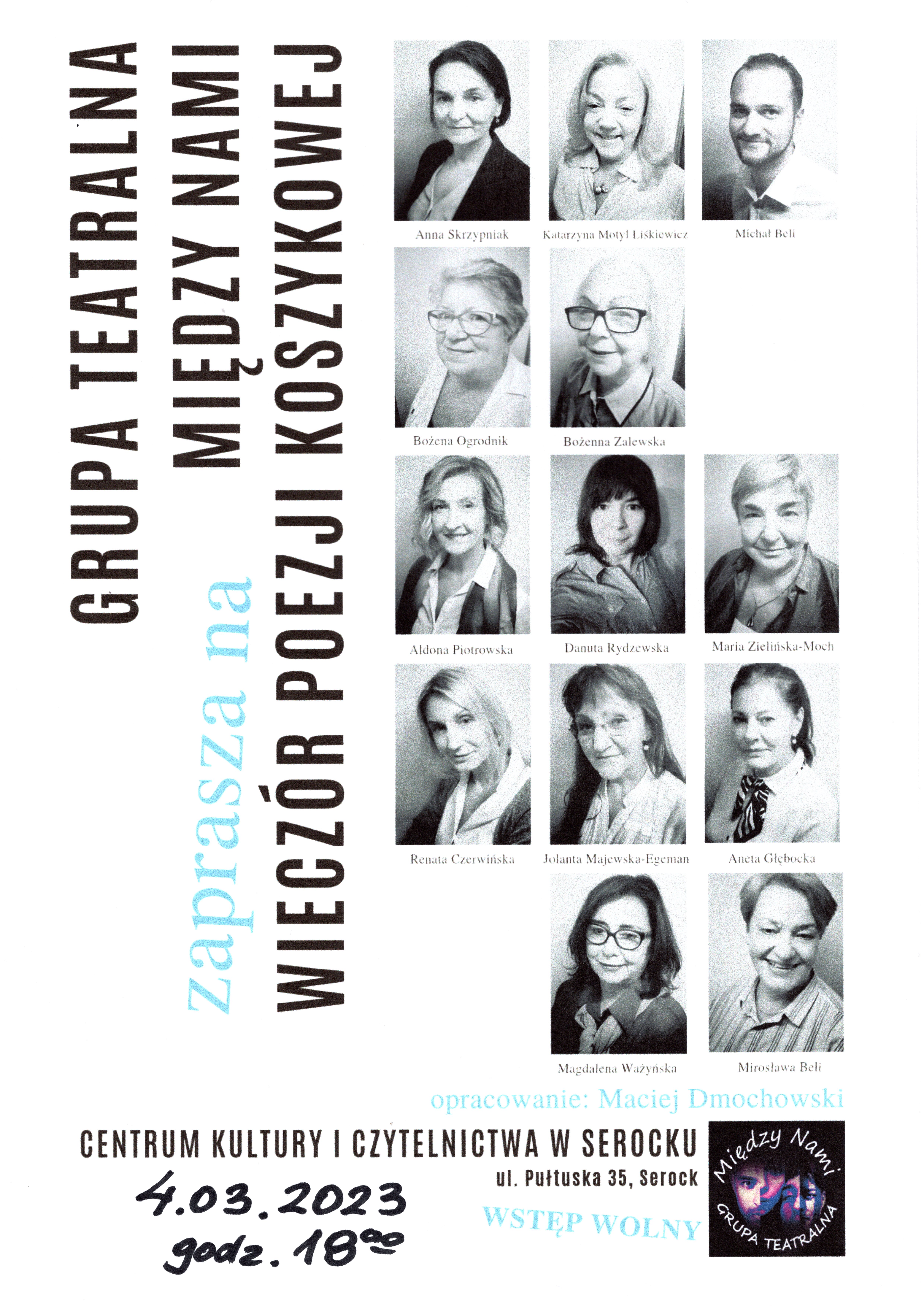 4 marca 2023 r. godz. 18:00 w Centrum Kultury i Czytelnictwa w Serocku w sali widowiskowej