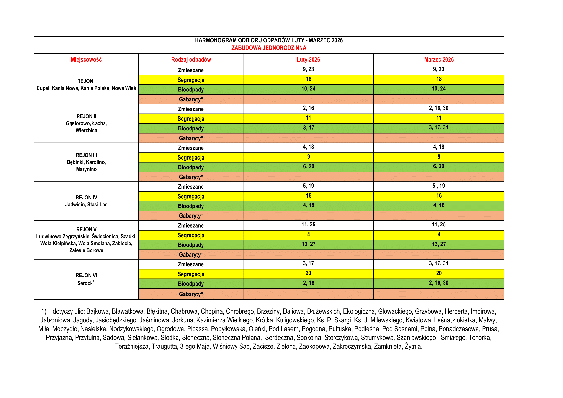 Nowy harmonogram odbioru odpadów na okres od 1 lutego 2025 r. do końca stycznia 2026 r., czyli do końca okresu obowiązywania obecnej umowy dostępny jest poniżej, w Urzędzie Miasta i Gminy w Serocku, w punkcie PSZOK na ulicy Nasielskiej.