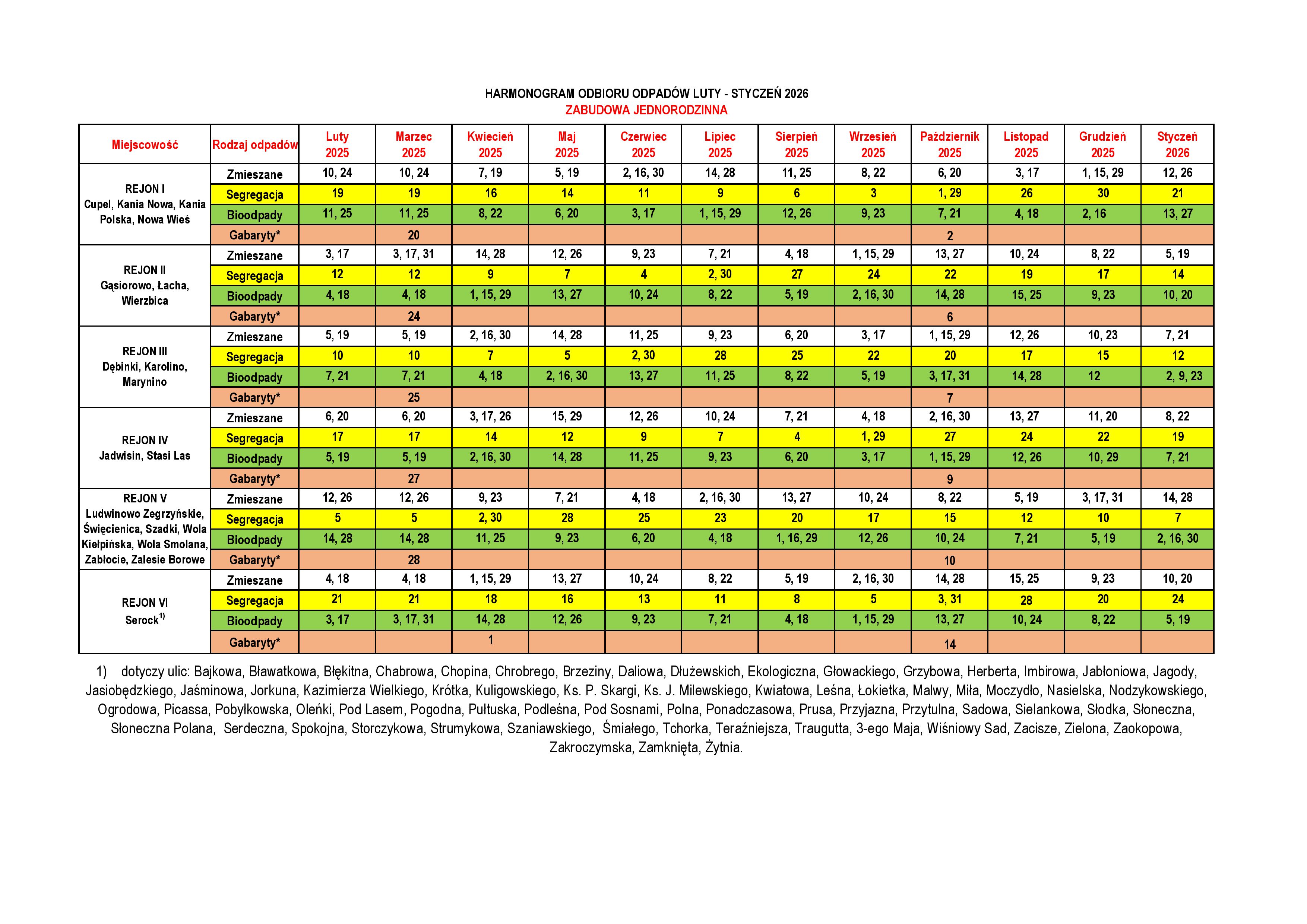 Nowy harmonogram odbioru odpadów na okres od 1 lutego 2025 r. do końca stycznia 2026 r., czyli do końca okresu obowiązywania obecnej umowy dostępny jest poniżej, w Urzędzie Miasta i Gminy w Serocku, w punkcie PSZOK na ulicy Nasielskiej.